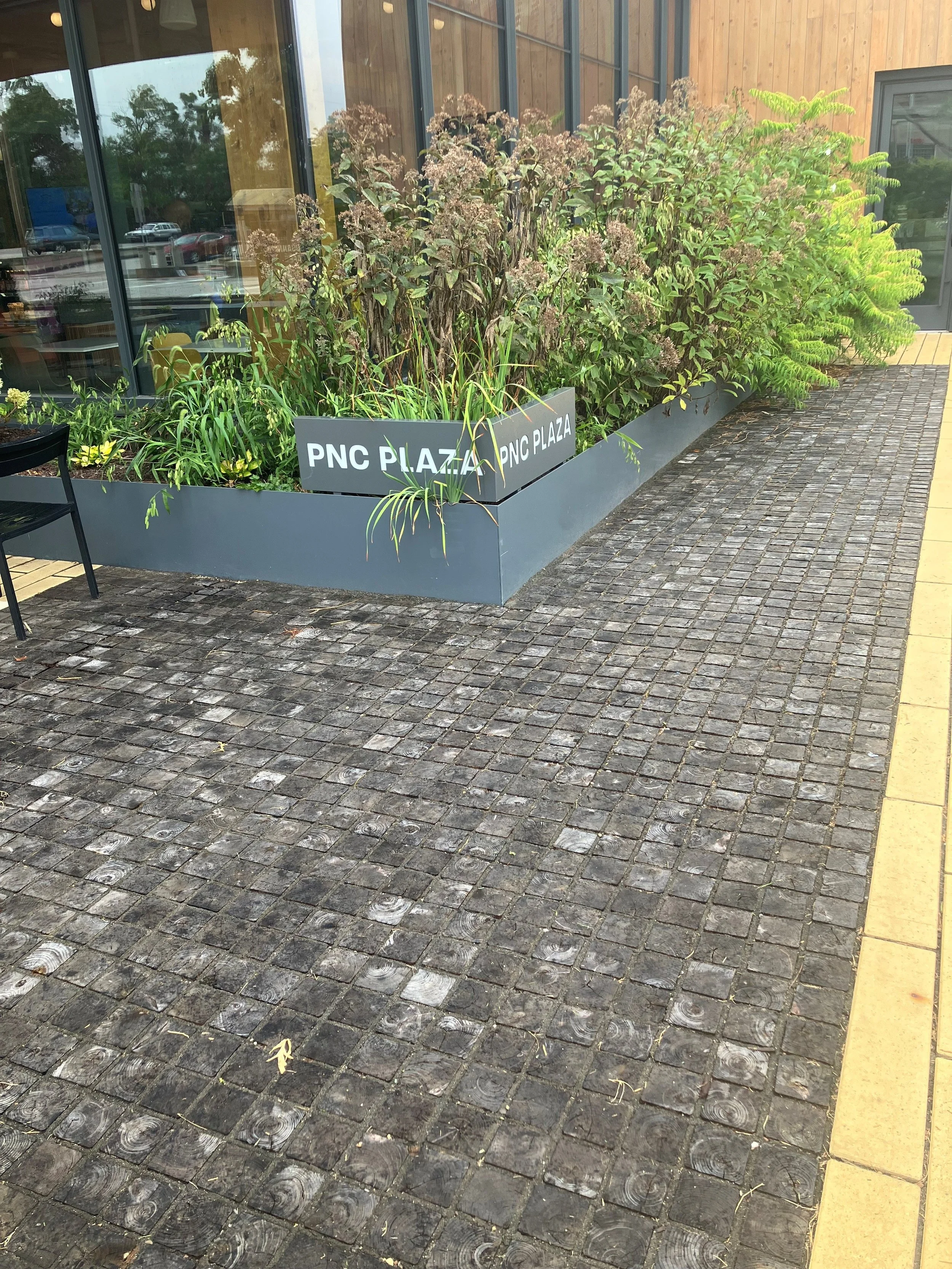 Wood block pavers at Cleveland Foundation’s HQ at 6601 Euclid Ave.