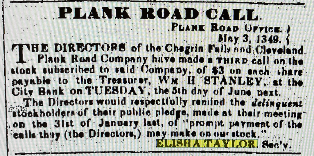 During the Plank Road boom of the 1840s, many roads in the US were planked by private companies funded by citizens to pave the road. This ad from May 1849 is typical of the “Plank Road Boom” period.