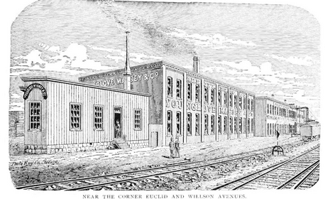 The first Warner & Swasey factory, ca. 1880s. Image courtesy of Cleveland State University, Michael Schwartz Library, Special Collections.